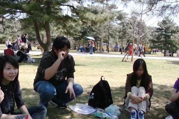 我们来到一片空地,围坐在一起,讨论学习、畅谈理想、议论时事,在交流思想、分享知识的同时,加深了彼此的相互了解和信任,增进了同学间的互助和友谊。我们就像春天一样,充满着生机和活力;而我们更加有责任,树立远大理想,将青年的激情和热血、聪明和才智充分的发挥,为祖国更好的发展、更加的富强展现的淋漓尽致!
