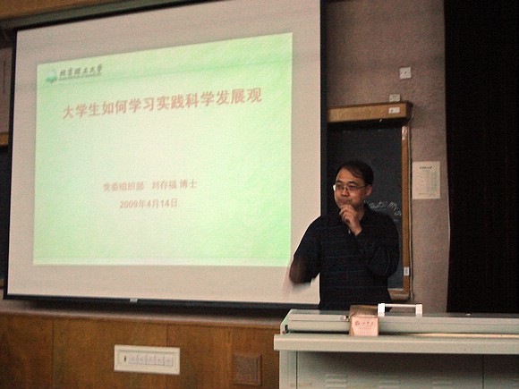 2009年4月14日晚七时,我们管理与经济学院的全体同学在7号楼108教室聆听了一堂题为“大学生如何学习和实践科学发展观”的形势政策课,主讲人是军工文化教育研究中心秘书长、bat365在线平台官网登录党委组织部副部长刘存福老师。