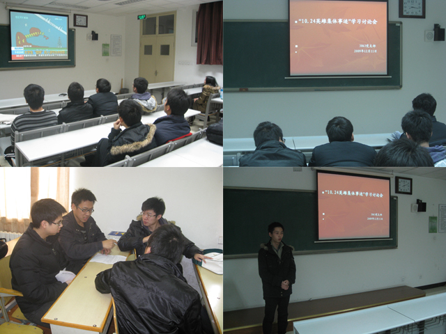 为积极响应中共教育部党组的号召,培养广大青年的社会责任感,弘扬见义勇为的伟大精神,激励和引导同学们树立正确的世界观、人生观、价值观和荣辱观,努力成为德智体美全面发展的中国特色社会主义合格建设者和可靠接班人,机械与车辆学院3063党支部开展了“10.24英雄集体事迹学习周”活动。12月11日,党支部在研究生楼415开展了以“弘扬人梯精神 勇担时代责任 ——学习10•24英雄集体”为主题的支部学习总结会。