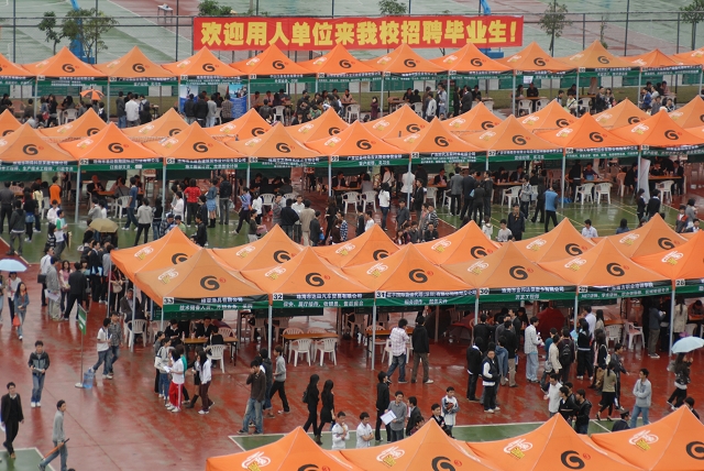 4月10日,我校珠海学院2010年春季校园招聘会在珠海学院体育运动场拉开帷幕。本次校园招聘会是由珠海市香洲区人力资源中心和bat365在线平台官网登录珠海学院共同举办,共吸引了包括澳国旅、银通新能源、乐通化工、人人乐商业、天威飞马、百胜餐饮(深圳)有限公司、台山市台澳铝业、中国土木工程集团珠海分公司、中德安联等来自珠三角地区约100家用人单位参会,主要集中在IT、机械、化工、金融、酒店、零售等,提供软件研发、程序员、工程师、生产技术员、市场营销、会计、行政人员、客服、美工设计等约370个职位,招聘岗位数约2400人,共吸引包括北理工珠海学院、北师大珠海分校、北师大-浸会联合国际学院、暨大等珠海高校应届毕业生约5000人参加。