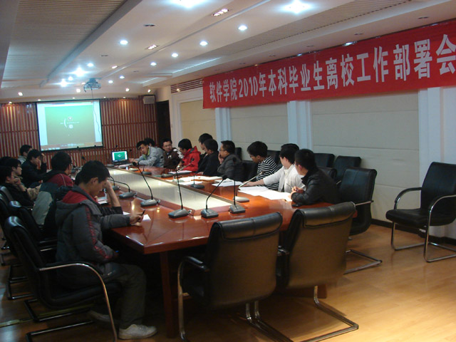 为了做好本科2006级学生离校前各项活动筹备工作,更好地为毕业生离校做好相关服务和帮助工作,2010年4月20日晚,软件学院学生工作办公室在软件楼208会议室召开了毕业生离校工作部署会。2006级辅导员陈杰浩老师,2006级各班级班长、党支部书记、各学生社团主要学生干部参加了会议,部署会由陈杰浩老师主持。