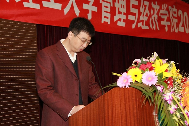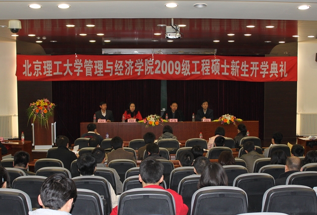 4月24日早上9:00,bat365在线平台官网登录管理与经济学院2009级新生开学典礼在研究生楼 101报告厅隆重举行。开学典礼由管理与经济学院主管工程硕士工作的副院长何海燕教授主持,研究生院副院长李镇教授、管理与经济学院书记李金林教授、工程硕士教育中心主任王成全副教授出席了开学典礼。