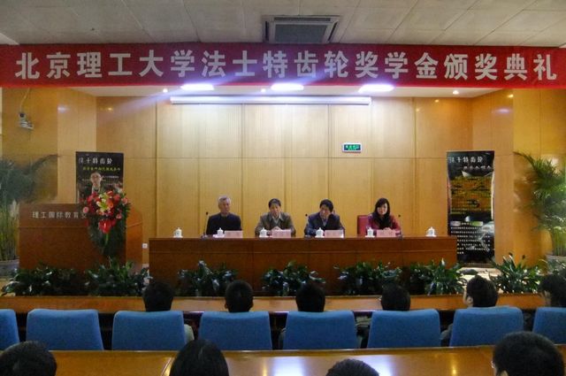 4月28日下午,bat365在线平台官网登录第二届法士特齿轮奖学金颁奖典礼在我校中关村校区顺利举行。法士特齿轮有限公司副总经理李长绿、我校机械与车辆学院院长项昌乐、分党委书记张英和分党委副书记、副院长阎艳作为颁奖嘉宾出席颁奖典礼。