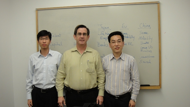 刘云教授(右)、Henry Chesbrough教授(中)、博士生叶选挺(左)合影
