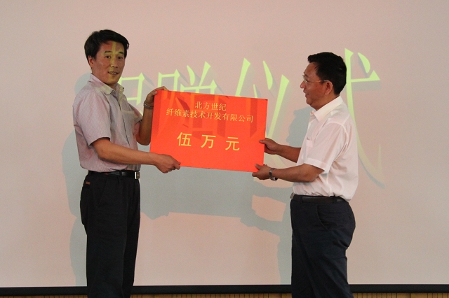 作为国内纤维素行业唯一的以研发为主的高新技术企业,北方世纪纤维素技术开发有限公司事业蓬勃发展的同时心系教育事业,从2007年起为北理工材料学院设立北方世纪奖励基金,额度为每年伍万元整,用于奖励勤奋学习、刻苦钻研、勇于创新的优秀师生。