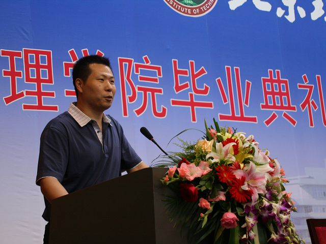 理学院党委书记王文生老师在致辞中说:“面对即将离开理工大学、离开理学院的同学们,除了留恋之情,我们心里更充满了对你们的祝福与期望!同学们,走出校园的时候请不要忘记带走你们的豪迈和自信,留下你们的牵挂和真情。希望大家能把所学的知识和能力贡献于我们的祖国和人民,贡献于社会的文明与进步。”这简短的寄语包含了理学院领导和老师们对每一位毕业生的殷切期望和希冀。