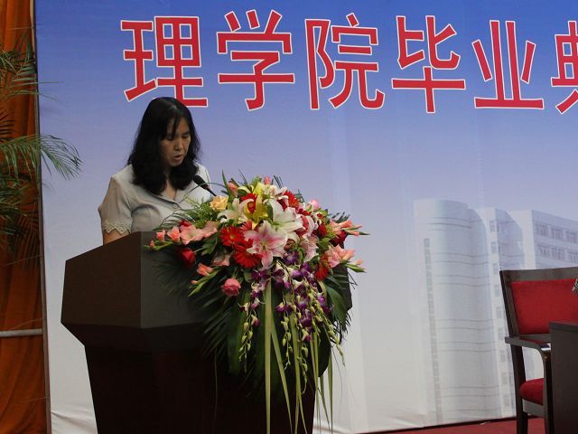毕业典礼由理学院党委副书记、副院长姜艳老师主持