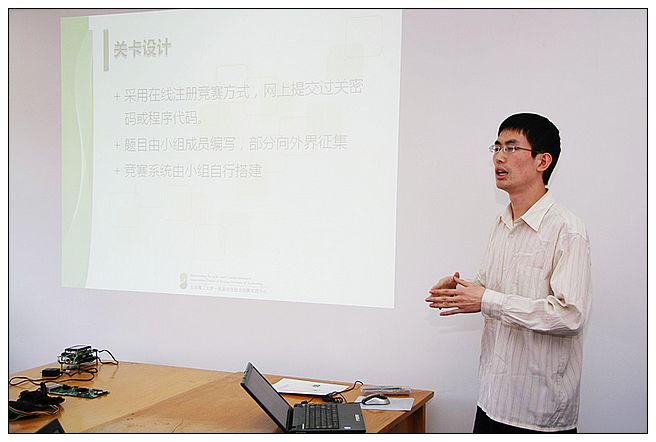ISC团队成员、2010年bat365在线平台官网登录信息安全与对抗技术竞赛(ISCC)负责人吕春良同学向香港理工大学的同学们介绍了ISCC 7年来的发展和ISCC 2010的基本情况。