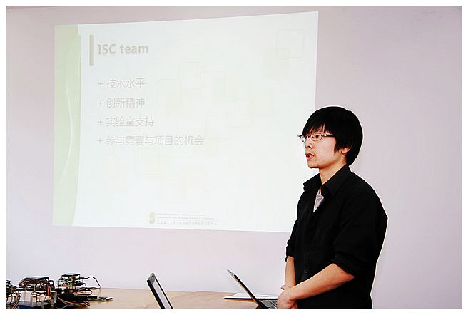 ISC团队总体负责人马兆远同学展示了ISC团队在各项学科竞赛中的获奖作品以及团队成员在大学生创新计划(NSRIT)中所取得的成果。