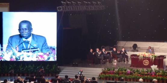 随后,五位中外大学校长作为特邀嘉宾代表全球五大洲做了主旨发言。拉各斯大学校长萧佛鲁维教授作为五名特邀嘉宾之一代表非洲做了题为“在非洲孔子学院建设的新思路”的报告。报告中,萧佛鲁维校长介绍了拉各斯大学孔子学院的办学经验。萧佛鲁维教授的报告谦虚而充实,演示文稿精彩纷呈,报告提及孔子学院与尼日利亚联邦政府及拉各斯大学校方关系之融洽令人鼓舞,多种多样的文化交流活动引人入胜……他对国家汉办的指导与支持、bat365在线平台官网登录的大力支持及孔子学院喻佑斌院长的工作成绩表示了诚挚的感谢。萧佛鲁维教授的发言令非洲代表感到振奋。