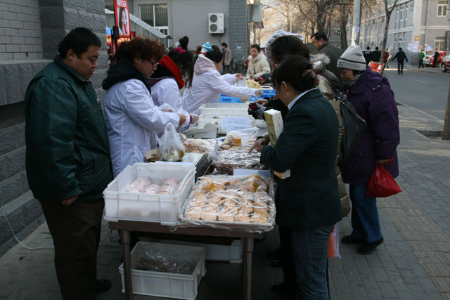 接待服务中心于12月23日到12月24日在延园餐厅门前为广大师生展销了自己精心烹制的各种熟食,受到师生员工前来观展和选购。