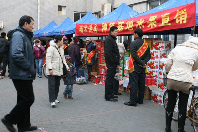 商业服务中心于12月22日到12月24日在第三食堂西侧展销商品有清风纸业、伊利牛奶、雀巢咖啡及江西省安国县革命老区的“将军红”脐橙、新疆苹果、库尔勒甜梨等十几种水果颇受前来观展和选购的师生的欢迎和采买。