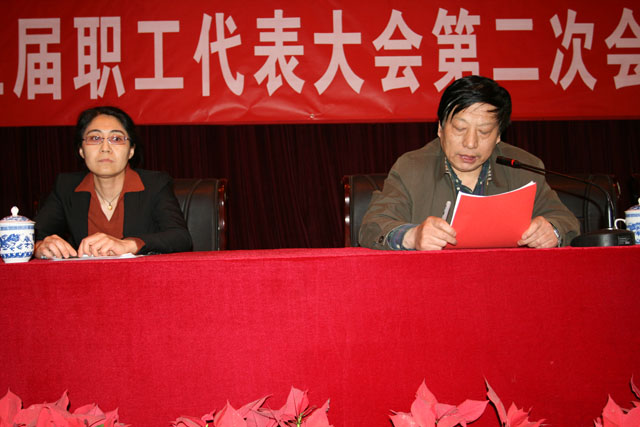 学校工会副主席王建光代表上级工会组织宣读了同意后勤集团召开职工代表大会的批复。