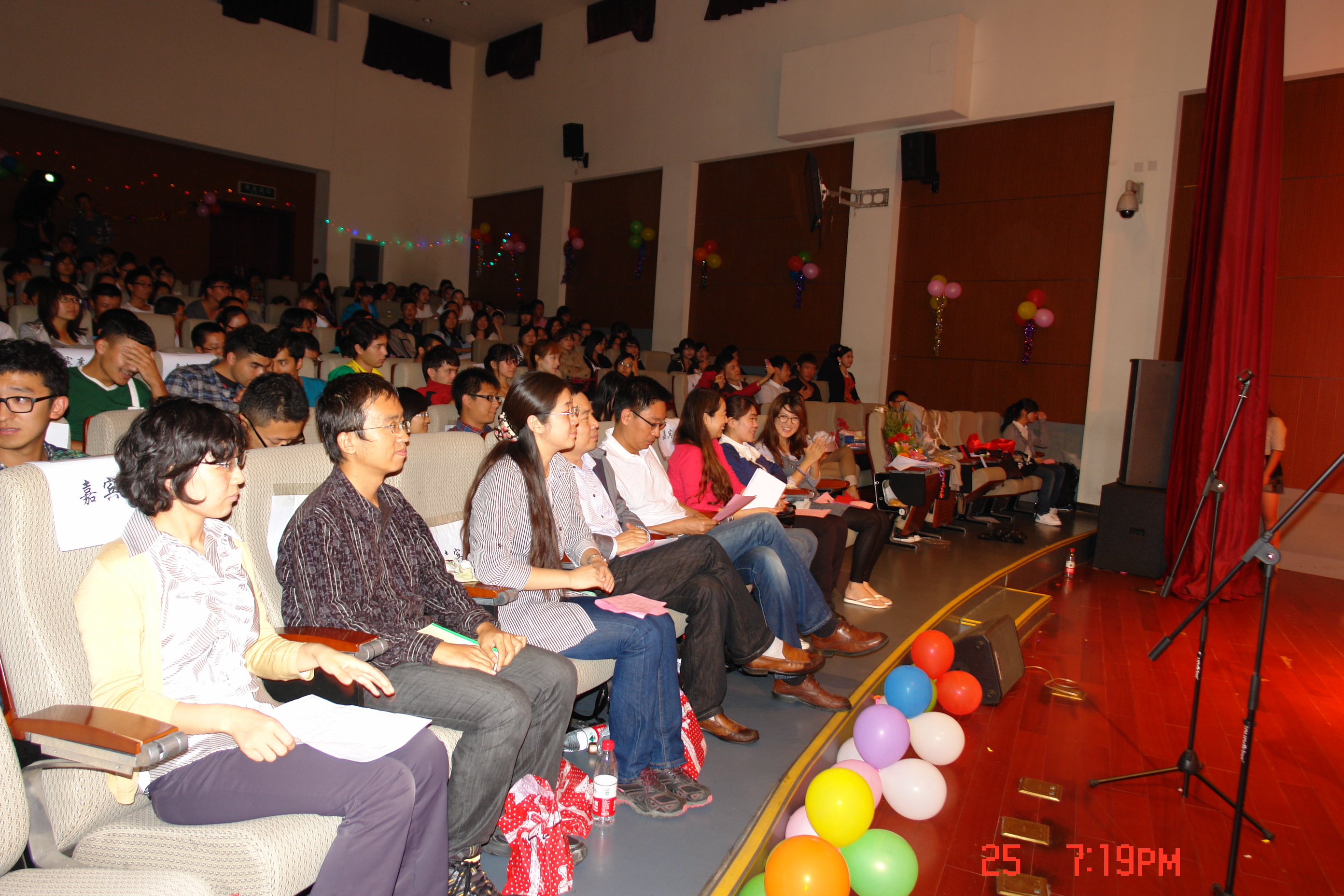 2012年9月25日晚,人文与社会科学学院2012级迎新晚会在综合教学楼演艺厅举行。人文学院副院长贾利军老师,党委副书记、副院长徐贵宝老师,班主任王丹、向小平、冯卓、张溪老师,辅导员孙硕、王群超、于满出席了本次迎新会。2012级全体新生与2010、2011级部分学生到场观看。