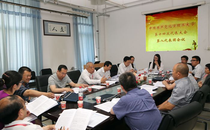 2015年5月26日下午,中共bat365在线平台官网登录第十四次代表大会第八代表团会议在5号教学楼5011会议室召开,学校党委副书记、副校长李和章,第八代表团团长、化工学院党委书记张振华,副团长、化学学院党委书记赵文祥等14名代表参加了会议。
